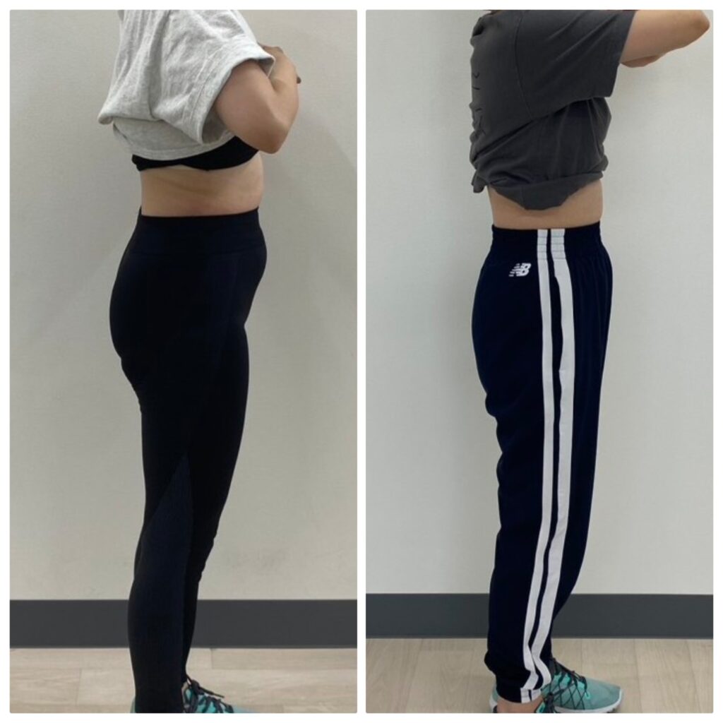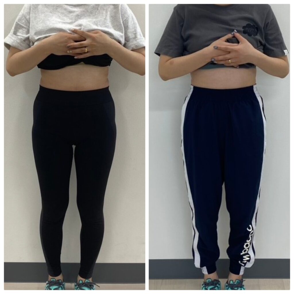 体重は-3㎏ですが、体重の数値以上にお腹が引き締まり、反り腰などもよくなり、姿勢にも良い変化がでました(^^)