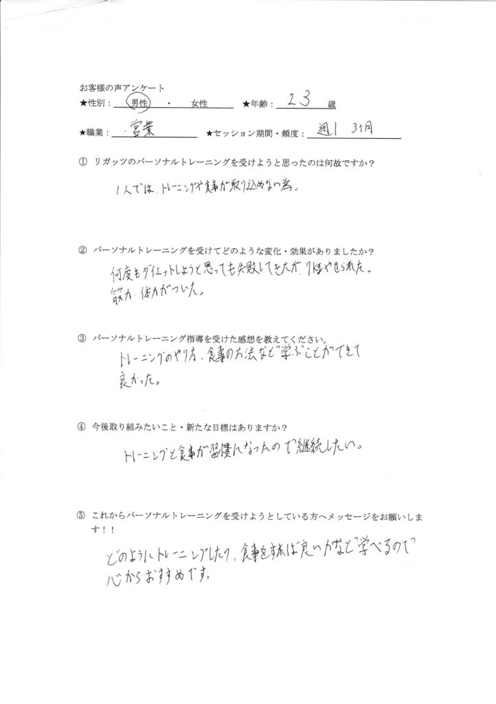 リガッツのパーソナルトレーニングを受けようと思ったのは何故ですか?