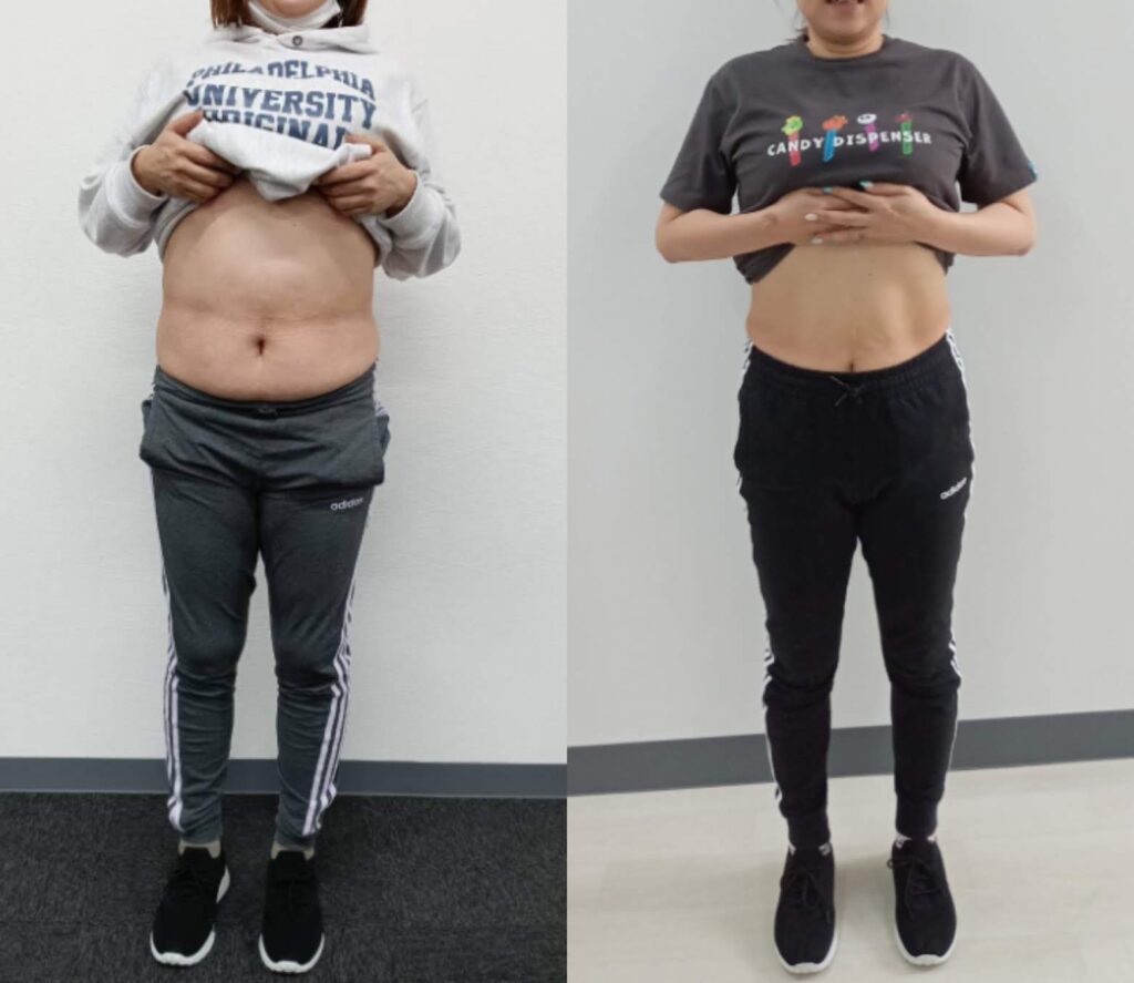 写真は1年間、週1~2回のペースでトレーニングにお越しいただいてるクライアント様のビフォーアフター写真です(^^)