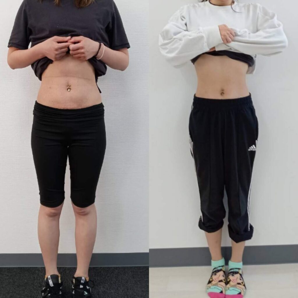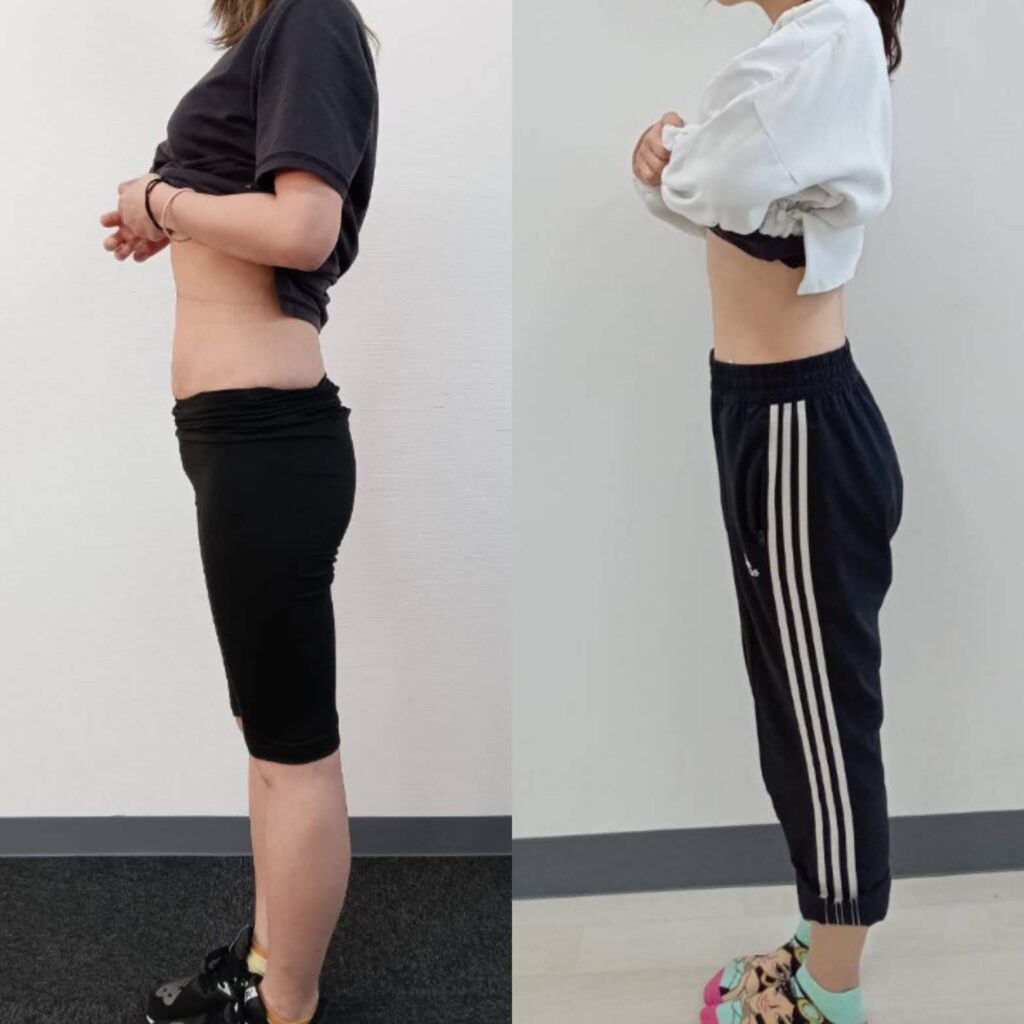 下記の写真のクライアント様は163㎝・47㎏とトレーニング前から細みの方でしたが、トレーニングを半年以上にわたり取り組んだ結果、筋肉がついたことにより、体重は同じでも見た目が大きく変わりました(^^)
